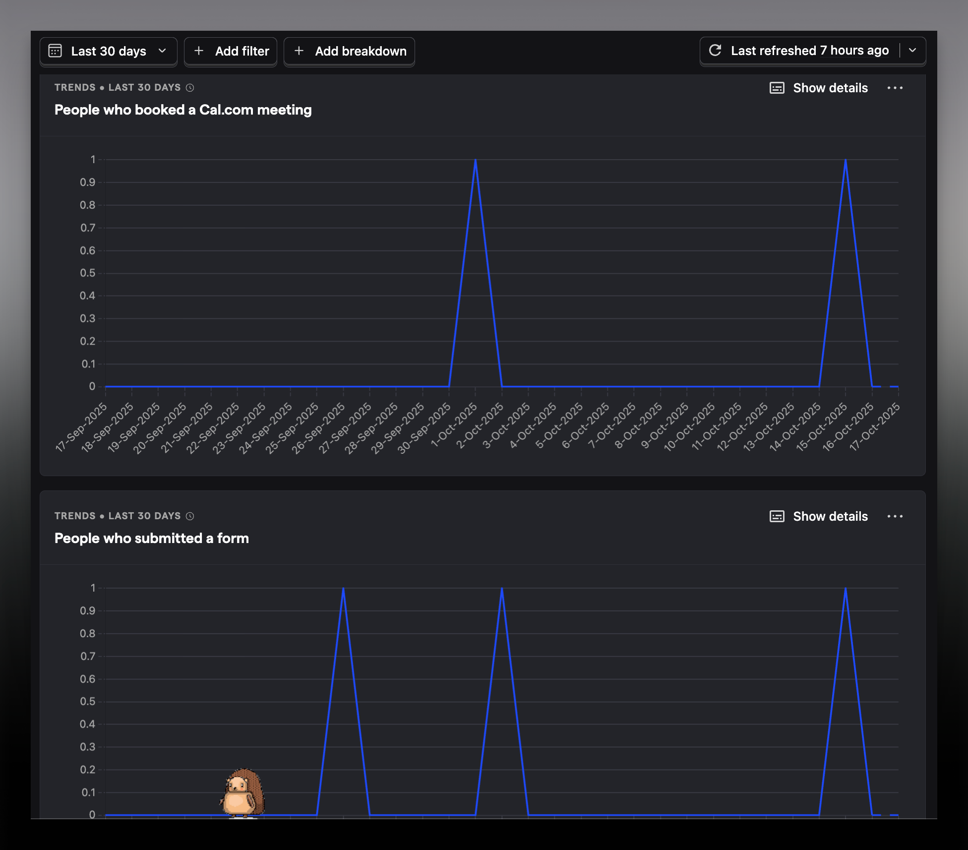 Compare this to Posthog. You run npx -y @posthog/wizard@latest --region us (change region to EU if you enjoy bureaucracy) and you're basically good to go. The startup wizard correctly guessed the two most important events on our site, and we were up and monitoring those events in less than an hour. End-to-end, yes, really.