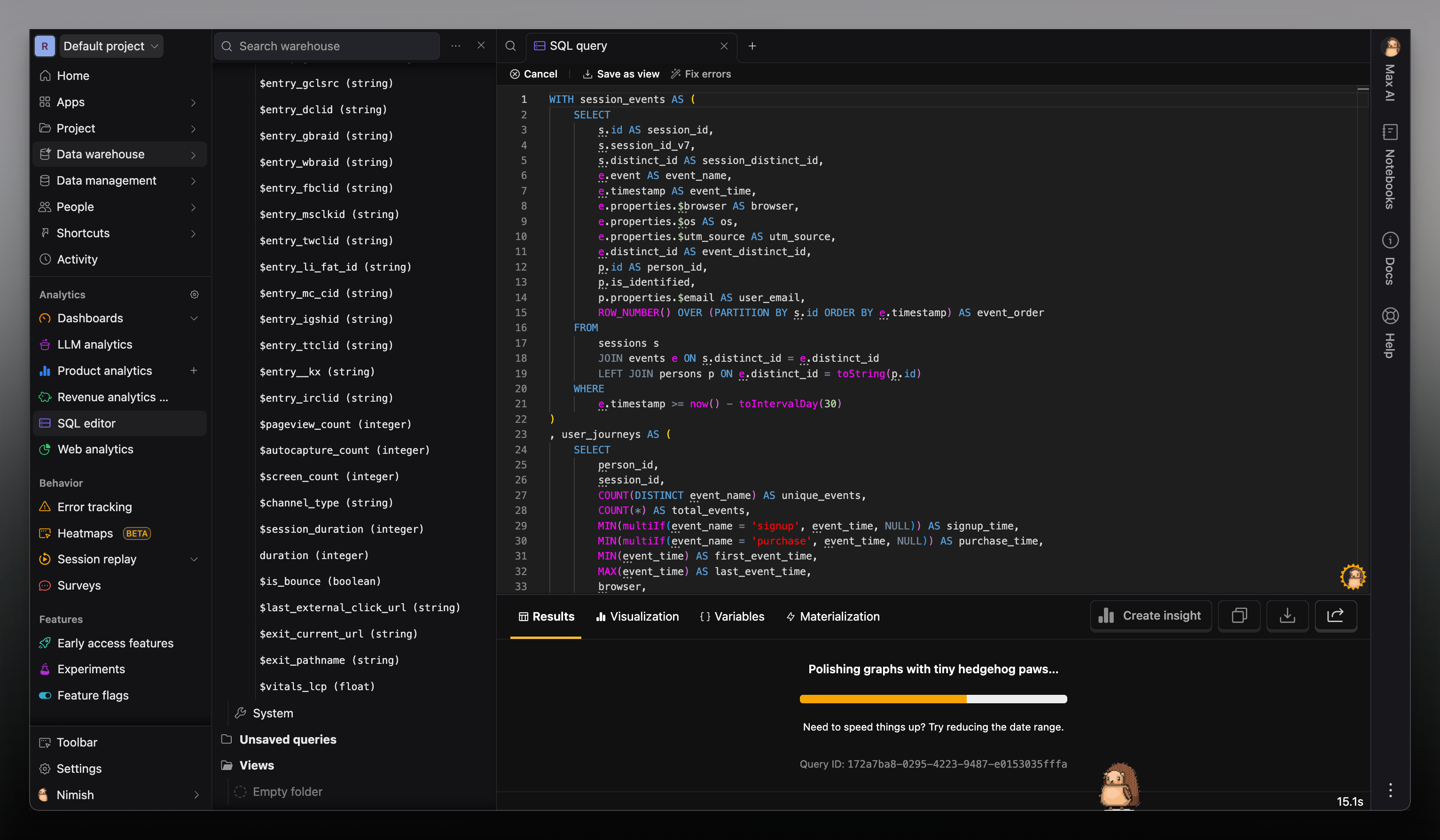 This then allows you to talk directly to PostHog in normal sentences to get dashboards set up exactly the way you want. E.g.: